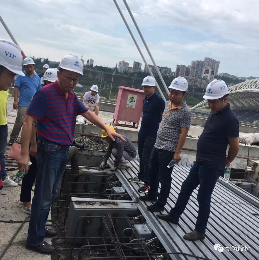近日,工程构件销售公司组织骨干员工一行16人,由总经理亲自带队,前往万州长江三桥中交路建施工段现场参观学习,助力大位移伸缩装置安装。全体人员就伸缩装置安装全过程:清渣-吊装-调平-织筋-混凝土浇筑,进行现场观摩学习,总经理在现场进行了讲说,并与销售骨干、技术、施工组织人员进行沟通交流。借此机会,总经理在现场还结合万州三桥桥梁结构,针对支座、桥检车等桥梁构件产品应用与销售人员进行讲解、沟通。