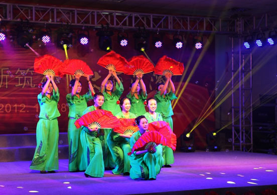 2012年12月28日下午,华亿在线体育(中国)官方网站工会举办了庆元旦文艺汇演。工程机械公司、精锻公司、机关等6个分工会共同演绎了他们精心编排的20个文艺节目。新筑路桥机械股份公司副总裁衡福明、新筑公司党委副书记、工会主席张宏鹰、新津县总工会副主席刘仁斌、新津县音乐舞蹈协会主席杨云忠等领导出席了节目现场,与公司职工欢聚一堂,共享新筑文艺盛宴。