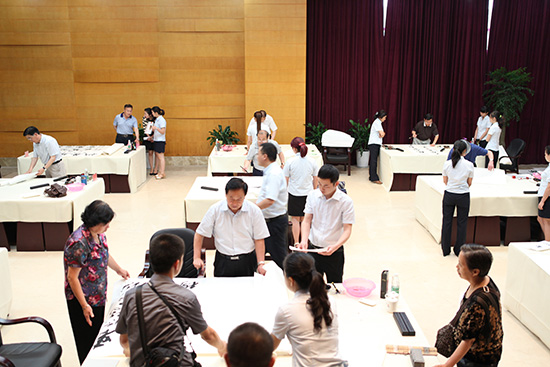 下午,为弘扬中国传统文化,交流书画艺术心得,老将军们在股份公司国际学术交流中心举办了主题为“将军文化进企业”笔会。十位老将军挥毫泼墨、笔舞丹青,以一幅幅或刚健有力,或豪迈奔放,或厚重沉稳的书画作品对黄志明董事长和新筑公司寄予了厚望,希望公司在黄董事长带领下,脚踏实地地将企业发展壮大,更好地为人民服务,为国家做贡献。