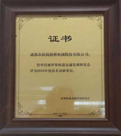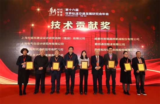 被世界轨道交通发展研究会授予“2019年度技术贡献奖”