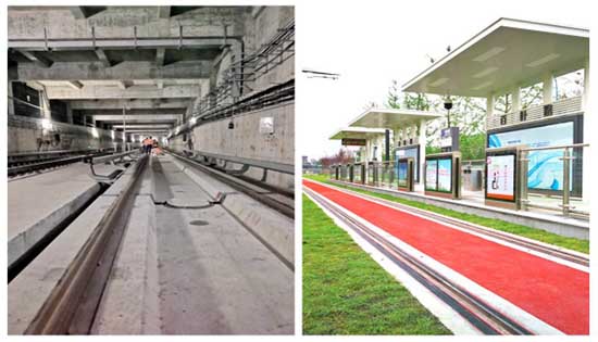 新筑股份为了加快产品的商业化应用,于2017年在广州地铁知识城十四号支线段开始运用,该支线开通运营两年以来,为运营方减少了大量的日常运营维护工作量,有效节约了日常养护维修费用。经线路复测,轨道状态保持良好,该系统减振等级为高级,同时降噪(车内噪声降低5~6dBA,车外噪声降低4~5dBA)、抑制波磨,对地电阻高(防杂散电流腐蚀)。此外,2019年12月13日该系统在四川成都有轨电车蓉2号线项目完成了项目最终评审验收,实现了嵌入式轨道产品在有轨电车领域的大规模应用。该系统技术的应用有效提升了城轨交通运营品质,实现了让城市生活更舒适宁静,为后序市场拓展奠定良好的基础。