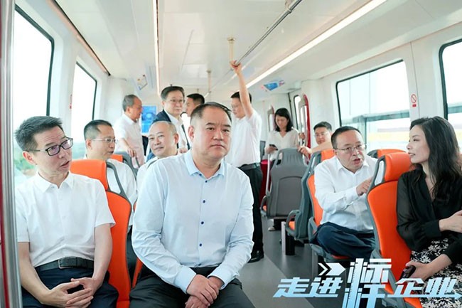 在《走进标杆企业》活动期间,还专门安排了国产化内嵌式中低速磁浮车辆试乘环节,到场的领导、嘉宾亲身体验了这种新兴轨道交通方式。