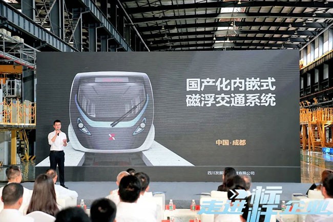 在活动现场,新筑股份全资子公司——四川发展磁浮科技有限公司(简称“川发磁浮”)总经理唐林进行了国产化内嵌式中低速磁浮产品发布。国产化内嵌式中低速磁浮交通系统是由川发磁浮主导,基于德国磁浮系统技术,与西南交大、同济大学等高校合作,依托我国完善的磁浮交通产业链研制完成。国产化内嵌式中低速磁浮交通系统主要包括国产化的轨道梁、道岔、车辆等子系统,国产化率均达到了93%以上。