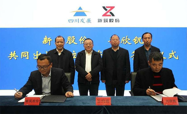 12月15日,华亿在线体育(中国)官方网站(以下简称新筑股份)与四川省兴欣钒科技有限公司(以下简称兴欣钒)在成都市签署《合资协议》,双方将共同出资设立四川发展兴欣钒能源科技有限公司(暂定名,最终以工商部门核准登记为准,以下简称合资公司)。四川省川威集团有限公司(以下简称川威集团)董事、首席投资官王思中和新筑股份党委书记、董事长肖光辉出席并致辞。新筑股份党委副书记、董事、总经理夏玉龙主持签约仪式。川威集团总工程师谢建国,财务中心总经理张弛;成渝钒钛副总经理钟云庆;川威集团运管中心科技部部长刘在波,风控中心合规部部长刘邻;兴欣钒董事长杨雪峰;成渝钒钛副总工程师兼四川星明能源总经理蒲年文;新筑股份党委副书记、财务总监 贾秀英,党委委员、纪委书记许一鸣,董事会秘书、副总经理张杨,党委委员、副总经理杨丽,党委委员、党委组织部部长、工会主席王小红等参加签约仪式。