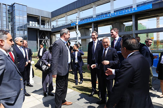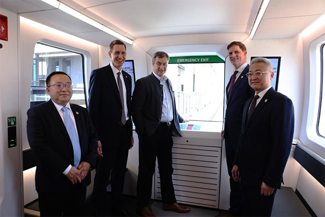 实地考察结束后,索德尔州长在磁浮交通示范车站发表了热情洋溢的讲话,首先对公司磁浮交通项目给予充分肯定,对这个中德合作项目寄予厚望。索德尔表示,巴伐利亚州高度重视科技创新,将积极促成这套磁浮交通系统在德国巴伐利亚州本土和巨大的中国市场推广应用。他希望中德双方合作伙伴要进一步加强在科技创新领域方面的交流合作,尽快推动首个磁浮商业示范项目落地实施并投入运营,尽快展示其技术优势和商业应用价值。