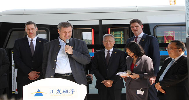 巴伐利亚州的经济在中国十分活跃。例如上普法尔茨行政区的建筑企业Max Bögl集团在成都运作着一条磁悬浮试验线。我们去往现场参观并且进行了试乘。这一创新的“移动”理念对气候友好、运行安静、能与当前的城市公共短途交通兼容,特别作为城市内部的短途交通系统令人十分感兴趣。在巴伐利亚州我们也信赖这些先进创新项目,正在对纽伦堡计划修建的一条磁浮轨道交通线路开展可行性研究。如果我们希望将技术出口至国外,那么我们必须在家里先信赖这项技术。祝这份中国-上普法尔茨行政区的伙伴关系取得成功!